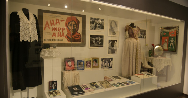 Оның бер жағында ұлттық мәдениетке жанкештілікпен қызмет еткен Әнуар Молдабеков, Ыдырыс Ноғайбаев, Әзірбайжан Мәмбетов, Хабиба Елебекова, Хадиша Бөкеева, Сәбира Майқанова, Фарида Шәріпова, Торғын Тасыбекова, Асанәлі Әшімов сияқты көрнекті өнер майталмандарының жарқыраған бейнелерін, қойылымдардағы костюмдерін тамашалауға болады.