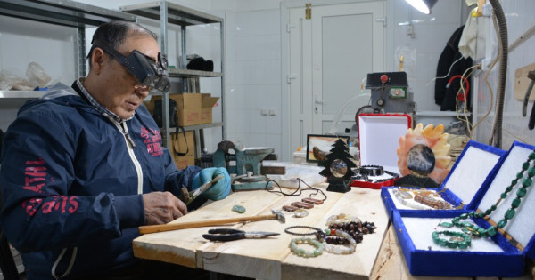 Аяқтың астында жатқан асыл тастарды біз байқай берме­ге­ні­міз­бен, Байболат Айтқалиұлы одан алқа жасап, жүзіктің көз­де­рін жонады. Өңірде өтетін көр­мелерден ғана көріп жүрген зер­гер­ді арнайы іздеп, шеберханасына бар­ған­быз. Жақұт пен лағыл, амети­ст пен опал сынды тастардан таңғаларлық әшекей жасап жүрген шебер «Креативті дамыту орта­лығының» жертөлесінде оты­рады екен.