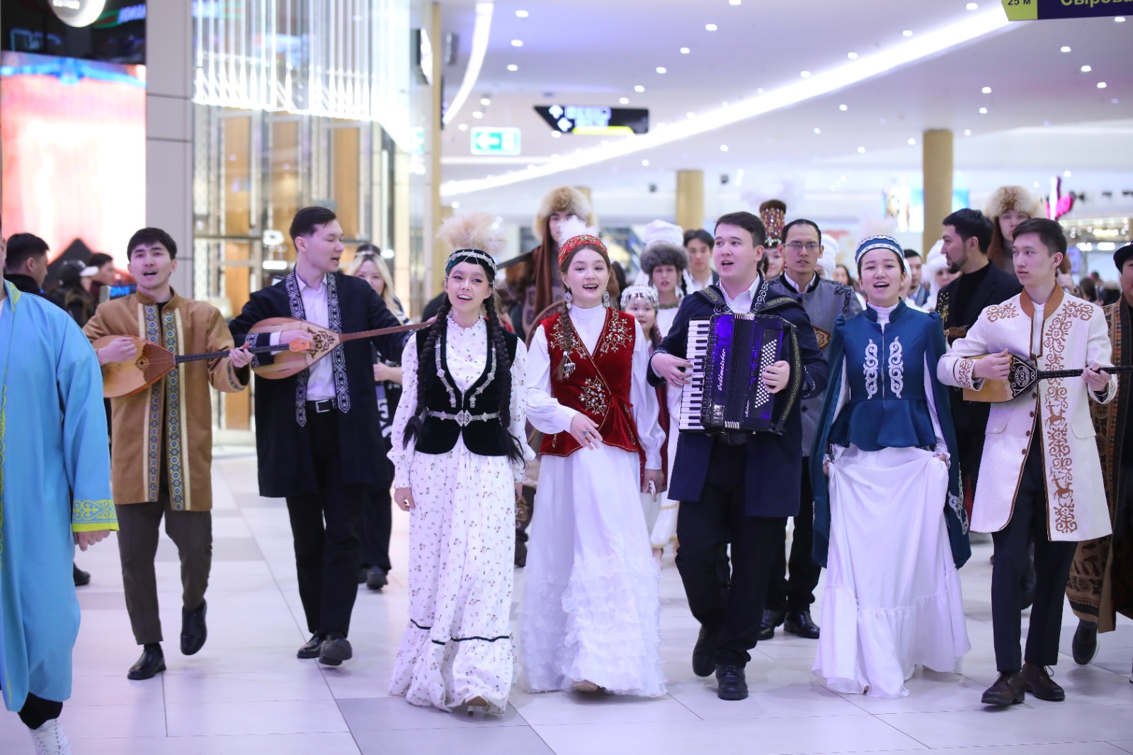 Ал ұлттық киімдер шеруінде отандық дизайнерлер, әншілер, «Qazaqstan» телеарнасының жүргізушілері Нұрбек Бекбау, Армангүл Тоқтамұрат,  Ирина Тен, Бексұлтан Әкімжан, сондай-ақ «Қазақстан» телерадиокорпорациясының қызметкерлері мен қала тұрғындары белсене қатысты. Үкілі кәмшат пен бүрмелі көйлек киген арулар, ақ кимешекті әжелер мен шапан жамылған жігіттерден құралған 230 адамдық топ сауда орталығын аралап, халық әндерін шырқады.