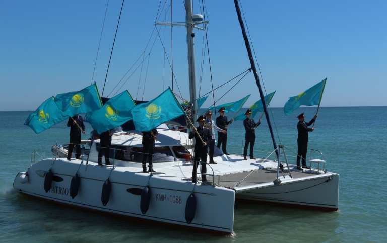 Шараға тек тәртіп сақшылары ғана емес, суда құтқарушылар мен балалар мен студент жастар қатысты. Каспий теңізін басты сахна етіп алған тәртіп сақшылары суда құтқарушылардың көмегімен теңізде полиция белгісі салынған алып баннерді көтерді. Жағалауда парус жасөспірімдер мектебінің оқушылары парустарымен «25» санын бейнеледі. Шара теңіздегі яхтада жалғасып, тәртіп сақшылары патриоттық тақырыпта ән шырқап, көкке 50 көгершін ұшырды. Дәл осы уақытта ақтаулық студенттер теңіз жағасында Жердің символикалық кескінін жасады. Жер «ішінде» жергілікті ЖОО әскери кафедра студенттері «25 жыл» деп жазып көрсетті. Әсерлі өткен шараға 350 адам қатысты.