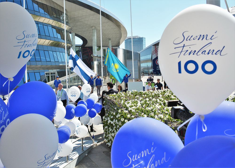 Финляндия Республикасының президенті Саули Ниинистё қазақстандықтарды Орталық Азияда тұңғыш рет ЭКСПО көрмесін өткізіп отырған биік беделдерімен құттықтады. Мұндай жаһандық жауапкершілікті кез келген мемлекеттің атқара алмайтындығын айта келіп, ол ЭКСПО-2017 көрмесін өткізудің жоғары дәрежеде ұйымдастырылғандығын атап көрсетті. Одан әрі Саули Ниинистё екі ел арасындағы шынайы достық ынтымақтастықты тілге тиек етіп, Қазақстан Орталық Азия елдері ішінде Финляндияның ең басты сауда серіктесі екендігін айтты.