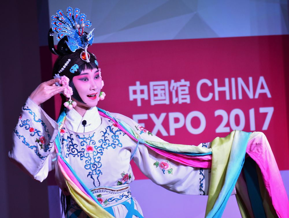 Қытай павильонындағы Цзянсу провинциясы апталығының ашылуына байланысты өткен салтанатты жиын сол өңірден арнайы келген өнер шеберлерінің концертіне ұласты.