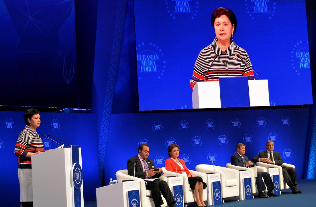 Президент 15 жылдың ішінде Еуразия медиа форумы лайықты беделге ие болғанын жеткізді. "Сонымен қатар алдағы әлеуметтік және технологиялық өзгерістерге дайындық тұрақты дамудың айқындаушы факторы болады. Осыған байланысты Форумның күн тәртібіне технологиялық тәртіптің өзгеруінде негізгі бағыты ретінде "жасыл" экономика мәселелерінің енгізілуі символдық мәнге ие. Бұл өз кезегінде, Астанада өтіп жатқан ЭКСПО-2017 көрмесінің тақырыбына үндес", - деп атап өткен Елбасы.