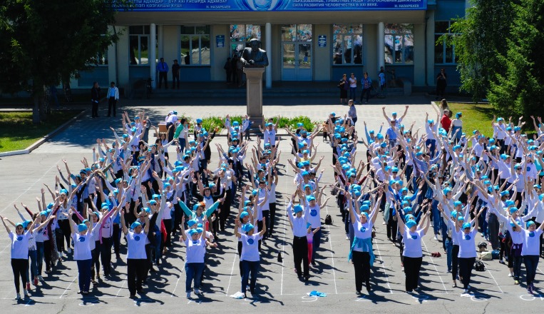 Қатысушылар сондай-ақ оқу ордасының 80 жылдығына арнап ауқымды флешмоб ұйымдастырды.