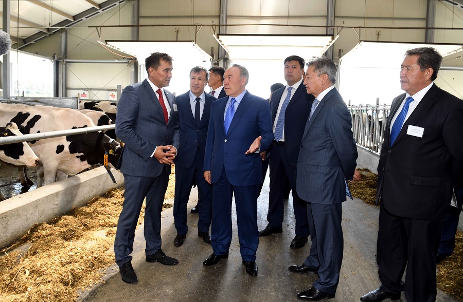 Мемлекет басшысы сүт-тауар фермасын аралап, онда сауын залы мен сүт қабылдайтын цехты көрді.