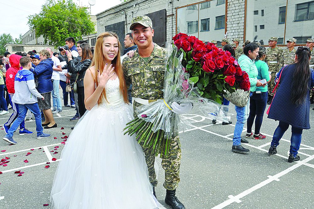 Әскери іс-шара кезінде сту­дент Аман­­гелді Әйтенов Ант қабылдау рә­сімі­нен соң сүйік­ті қызына ұсыныс жаса­ды. Студенттер алаңның ортасы­на шығып, жүрек суретін бей­неледі.