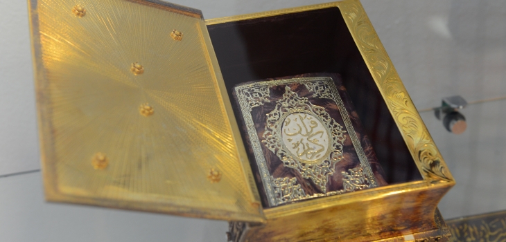 Ашық ғарышта, «Мир» халықаралық ғарыш бекетінде болған Құран басылымы топтамадағы ерекше жәдігерлердің бірі. Оны Мемлекет басшысына отандық ғарышкер Талғат Мұсабаев сыйға тартқан.