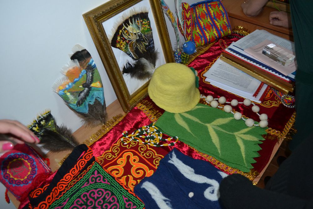Сарайдың «Декор» шығармашылық студиясының жетекшісі Елена Мирзоян да фоамираннан жасалған бұйымдар, картиналар, бисерден өрілген бұйымдар жасапты.