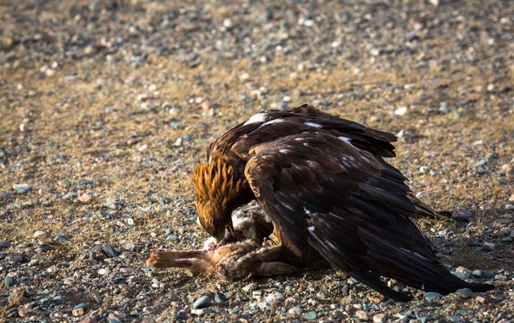 Көзіндегі томаға оған ешқайда алаңдамауын, аяқбауы оның уақытынан бұрын ұшып шықпауын қамтамасыз етеді. Аңшы бүркіт жемтігіне алдымен тырнағымен жабысып, жүрегін шоқып тастайды. Ал жүгіріп жеткен иесі оны сипап, астындағы аңды алады. Бұл тұста иесі оған міндетті түрде бір түйір ет беруі тиіс», – деп жазады ББС.