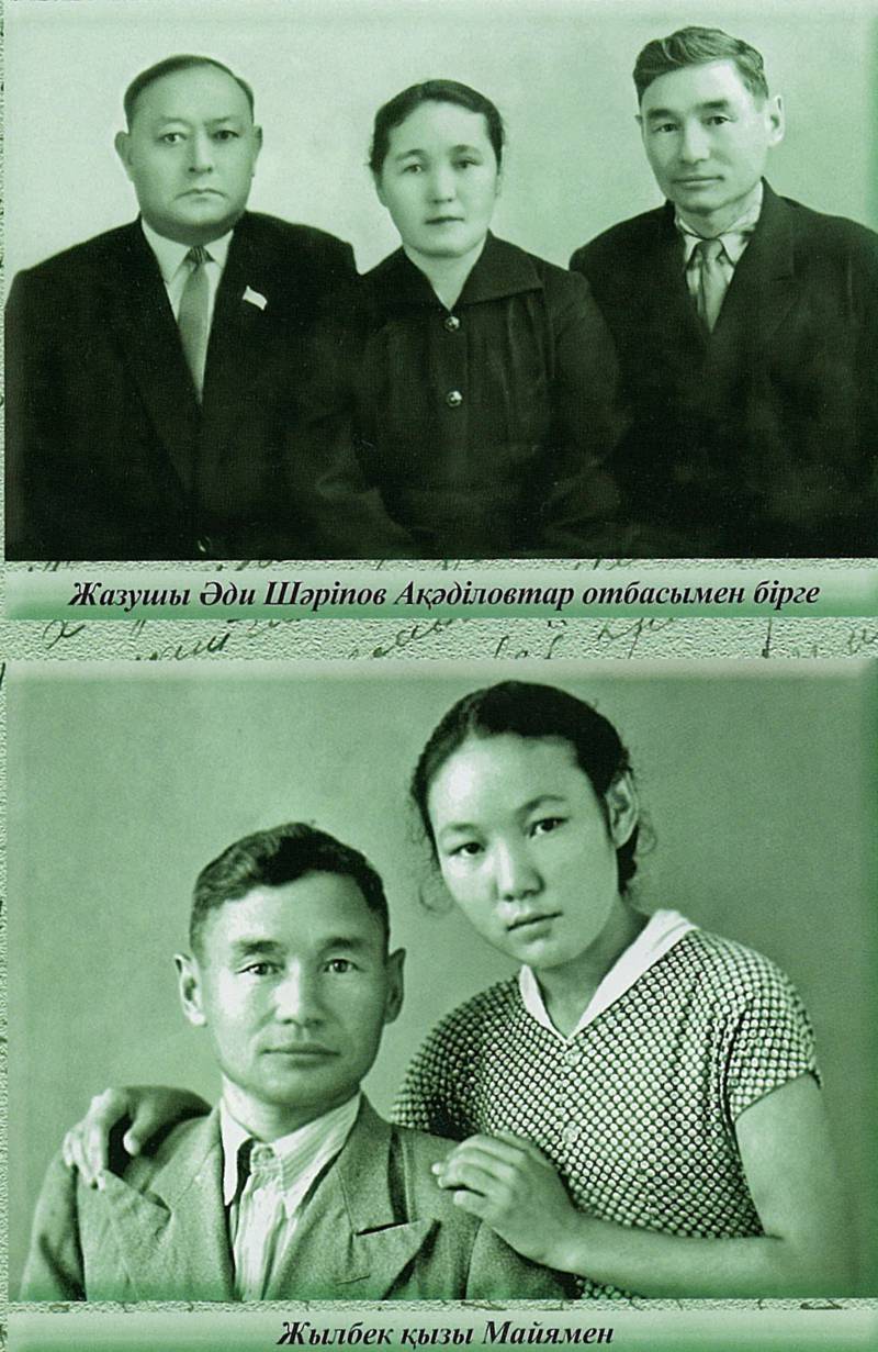 Суреттерде: 1. Жылбек пен Жамал сәбилері Майямен 2-ші Клетня партизан отряды мүшелері арасында, 1943 жыл. 2.КазПИ-дің 1-ші курс студенті Майяның әкесі Жылбекпен түскен суреті, 1958 жыл. 3.Жазушы Әди Шәріпов кейіпкерлері Жамал апа, Жылбек ағамен бірге, 60-шы жылдар. (Суреттер Д.Қарашашеваның архивінен алынды)