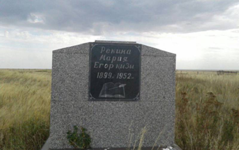 Мария Егорқызы Рекинаның мазары Қорғалжын ауданына қарасты Сабынды ауылынан 9 шақырым жерде орналасқан. «Туған жер» арнайы жобасы аясында аталған құлпытас туралы айтпасқа әддіміз жоқ. Өйткені кезінде қазақтың Дүйсен есімді жігітіне ғашықтық сезімінен туған әні арқылы орыс қоныс аударушысының қызы қазақ тарихынан ойып тұрып орын алды. Өзінің жігітіне арнаған әнімен халық жүрегіне жол тапқан қыздың арман-мұңы жатыр бұл әнде. Жастардың қосылуына екі ұлттың әдеп-ғұрыптарындағы өзгешеліктер кедергі келтірсе керек. Оның үстіне діни наным-сенімдері де басқа. Бірақ сол заманда да жүрекке, махаббатқа әмір жүрмеген ғой.