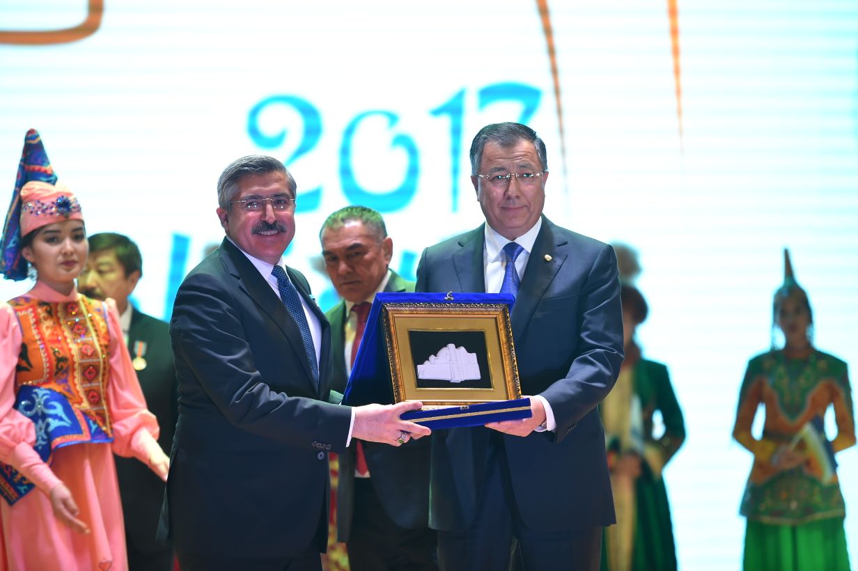 Бұдан соң аймақ басшысы ҚР Мәдениет және спорт министрі Арыстанбек Мұхамедиұлы мен «ТҮРКСОЙ» Халықаралық ұйымының Бас хатшысы Қасейінов Дүйсен Құрабайұлына алғыс білдіріп, марапаттаса, Түркия Республикасы Мәдениет және туризм вице министрі Хусейн Яйман мырзаға Қазақстан-Түркия достығы мен ынтымақтастығын дамытқаны үшін төсбелгі тақты. Ал қалған түркі елдерінен келген қонақтарға облыс әкімінің арнайы сыйлығы тапсырылды.