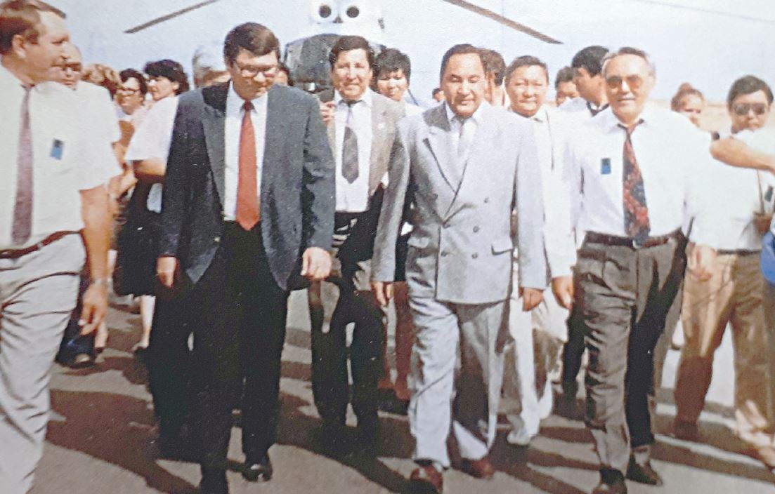 Сол күні қалада одақтық және республикалық министрліктер, мекемелер мен мұнай саласына байланысты басқа да құрылымдардың, сондай-ақ мұнайшы мамандардың және ғалымдардың қатысуымен геолог-барлаушы мұнайшылардың республикалық жиналысы өтті. Осы форумда сөз сөйлеген Нұрсұлтан Әбішұлы біздің аймақта мұнай мен газды іздеу және оны өндірудің республика және жалпы Одақ үшін маңызы бар екенін ерекше атап өтті. Кейінгі жылдары республиканың батыс облыстарында мұнай газ өндіру саласын дамыту мәселелері республика Компартиясы ОК хатшысының, кейін Министрлер кеңесінің төрағасы Н.Назарбаевтың нұсқауы бойынша барлық республикалық және облыстық жиналыстар мен форумдардың күн тәртібінен түскен жоқ. Сол жылдары оның шақыруымен облысқа КСРО Министрлер кеңесінің төрағасы Н.Рыжков пен КСРО Мемлекеттік жоспарлау комитетінің төрағасы Н.Байбаков келді. Мәскеулік меймандар Ембідегі жұмыс істеп тұрған кен орындарына және Гурьевтің ірі салалық кәсіпорындарына барды, содан кейін Маңғыстау, Ақтөбе, Орал, Қызылорда және Гурьев облыстары аумағындағы геологиялық барлау жұмыстарының барысымен танысты. Одақтық деңгейде зор маңыз берілген Теңіз, Қарашығанақ кен орындарын жылдам игеру мәселелеріне және Маңғыстаудағы жылу энергетикалық кешеннің дамуына ерекше қызығушылық танытты.