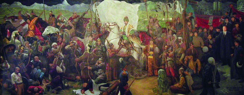 Сөзіміз дәйекті болсын, тарихи тақырыптарға үлкен дайындықпен келетін қылқалам шеберінің тағы бір жалаулы жұмысы «Саурандағы шайқас» (2009-2011) полотносы. Қасиетті тәуелсіздік, бүгінгі егемендік оңай келмеген десек, осының бәрі аталмыш туындыда сайрап тұр. Азаттықтың азапты жолындағы батырлардың жан алысып, жан беріскен сәттері, трагизм үлкен ауқымда кескінделуімен құнды.