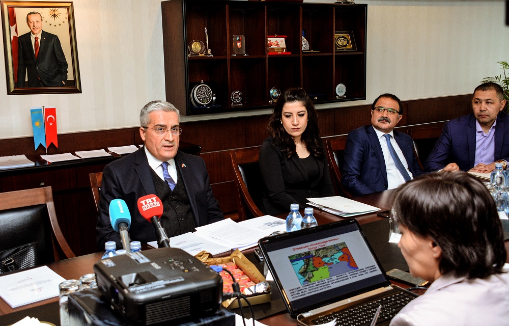 «Операция басталғаннан бері Түркия әуе күштері террористік ұйымдарға тиесілі 782 нысан жойылған. Бұдан бөлек екі мыңнан астам лаңкестің көзі құртылды. Қақтығыс барысында қарулы күштеріміздің 32 сарбазы мерт болып, 183 жауынгері жараланды. Іс-қимылдар кезінде халықаралық қоғамдастық тыйым салған оқ-дәрілер қолданылмайды. Мұндай қарулар Түркия арсеналында жоқ», деген елші «Зәйтүн бұтағы» операциясының маңызын түсіндірді.