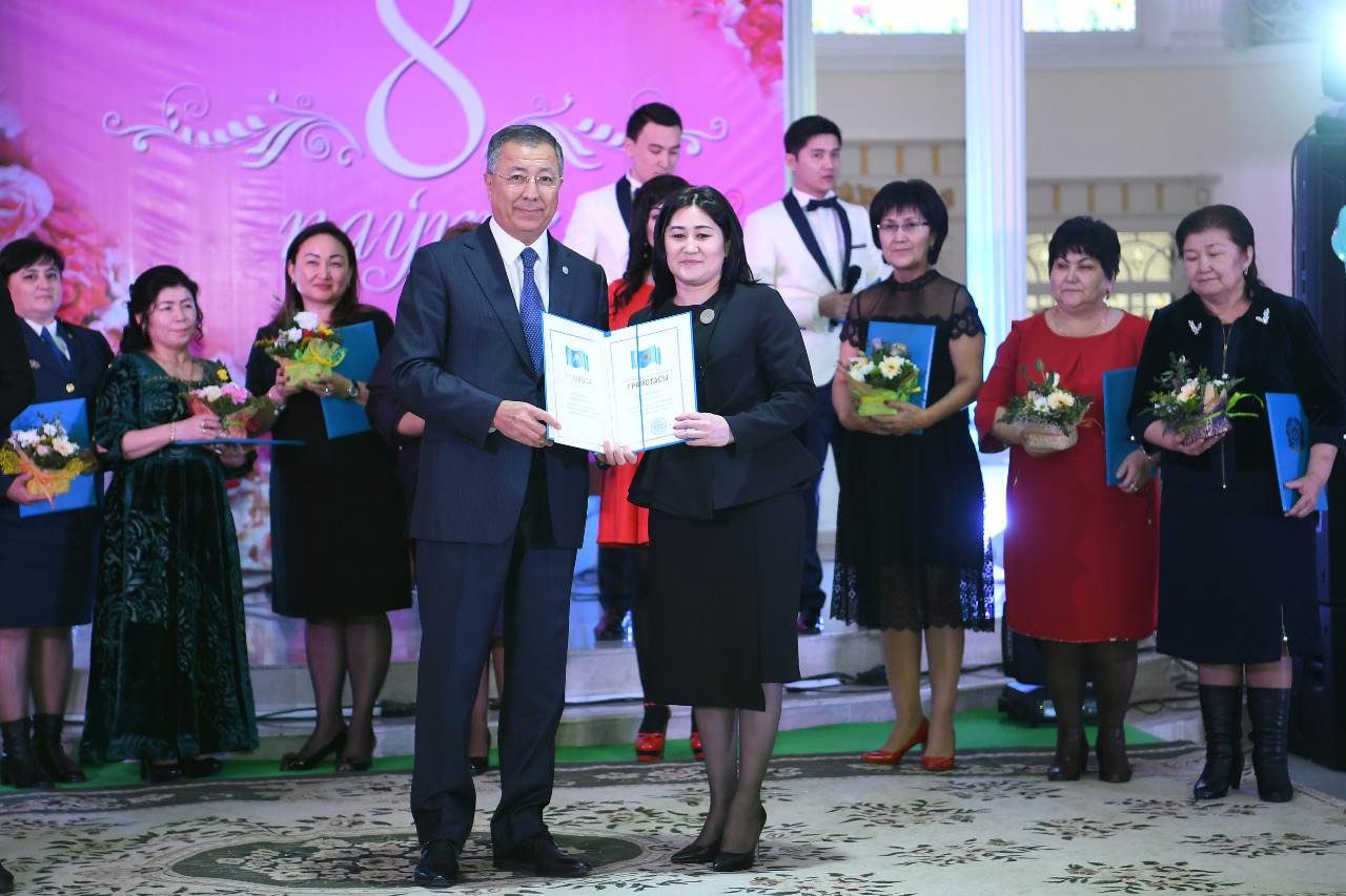 Оңтүстік Қазақстан облысының әкімі Ж.Түймебаев қыз-келіншектер мен аяулы аналарды «8 наурыз – Халықаралық әйелдер күні» мерекесімен құттықтау кезінде осындай деректер келтірді. Ардагерлер мен зиялы қауым өкілдері, облыстық ассамблея өкілдері, облыс әкімінің жанындағы әйелдер істері және отбасылық – демографиялық саясат жөніндегі комиссия мүшелері, облыстың аудан, қалаларынан түрлі салада қызмет ететін қыз-келіншектер қатысқан салтанатты жиында өңір басшысы үйдің де, түздің жұмысын қатар алып, қоғамда айрықша белсенділігімен көзге түсіп жүрген 33 әйелді марапаттады.