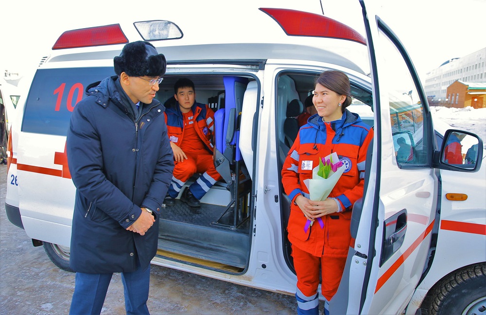 Стансаның бас дәрігері Сапарбек Дүйсеновтің айтуынша, мекеме барлық заманауи қондырғылармен толық жабдықталған. Соның нәтижесінде тәулігіне 274 шақыруға дейін қызмет көрсетуге қауқарлы. Шақырулардың өзі 4-6 санатқа бөлінеді. Мыңға жуық қызметкер еңбек ететін ұжымда қыз-келіншектердің де саны айтарлықтай көп. Дегенмен, олардың бәрі бірдей мереке күндері еркін демалуға мұрсат алмайды. Өйткені халық денсаулығына адал қызмет ететін абзал жандар бұл күндері де жұмысқа шығып, өз міндеттерін орындайды. «Нұр Отан» партиясы Төрағасының Бірінші орынбасары осындай жұмыс үстіндегі аруларды арнайы құттықтап, оларға сәттілік тіледі.