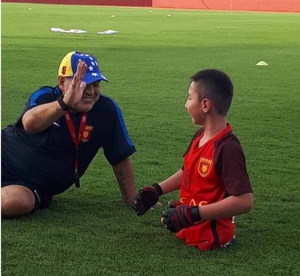 Әли футбол жұлдызымен бірге футбол ойнап, одан сыйлықтар алған. Сонымен бірге, Марадона өзінің әлеуметтік желісінде "Gracias, Али" деп жазба қалдырып, екеуінің бірге түскен суретін жариялады.