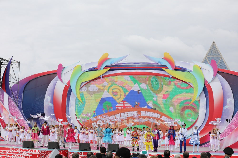 Мерекелік концерт аясында елордалық ұлттық-мәдени бірлестіктердің шығармашылық ұжымдарының, Астана қаласының мемлекеттік академиялық филармониясы әртістерінің және отандық эстрада жұлдыздарының қатысуымен «Рухани жаңғыру – бірлік пен тұтастық негізі» атты театрландырылған қойылым көрсетілді.