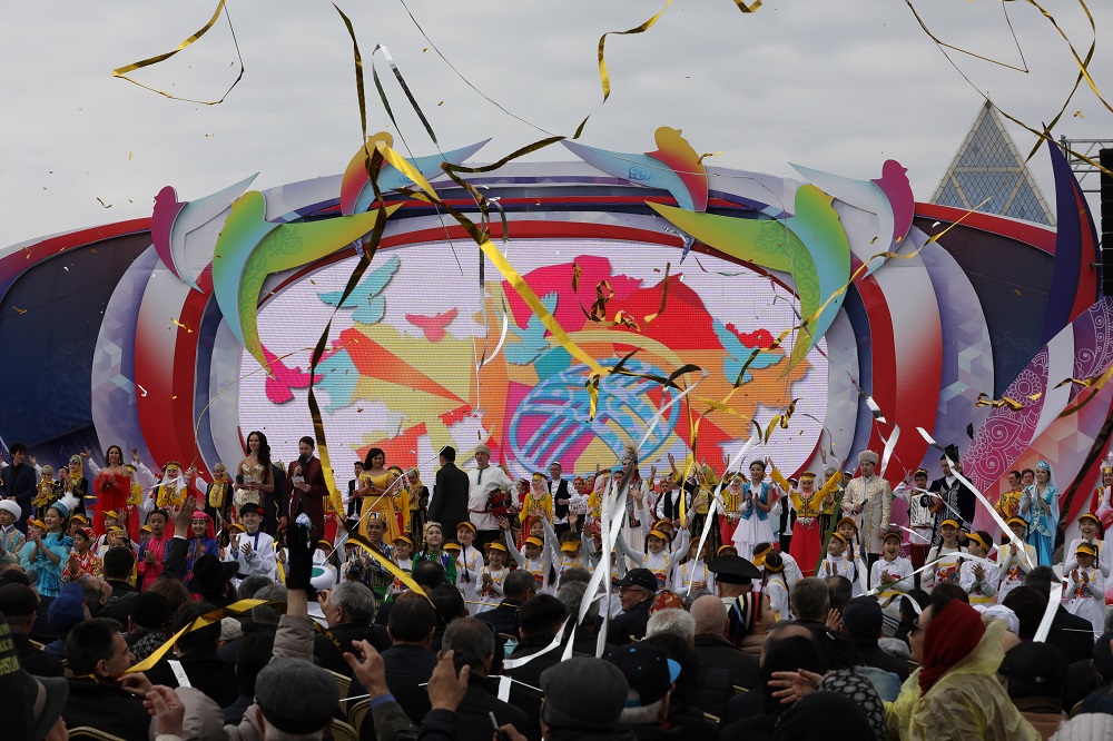 – Біз еліміздегі алуан түрлі мәдениеттердің, барлық тілдер мен дәстүрлердің бәрі де өркендеп келе жатқанын көріп отырмыз. Біз – біртұтас халықпыз, бір-бірімізді құрметтейміз әрі жақсы көреміз, ортақ Конституция мен заңдарға бағынамыз. Бір-бірімізді құрметтеп, достық қарым-қатынаста болу – зор бақыт. Осы бірлігімізді сақтап, бақытымыздың қадірін білейік! – деді Нұрсұлтан Назарбаев.