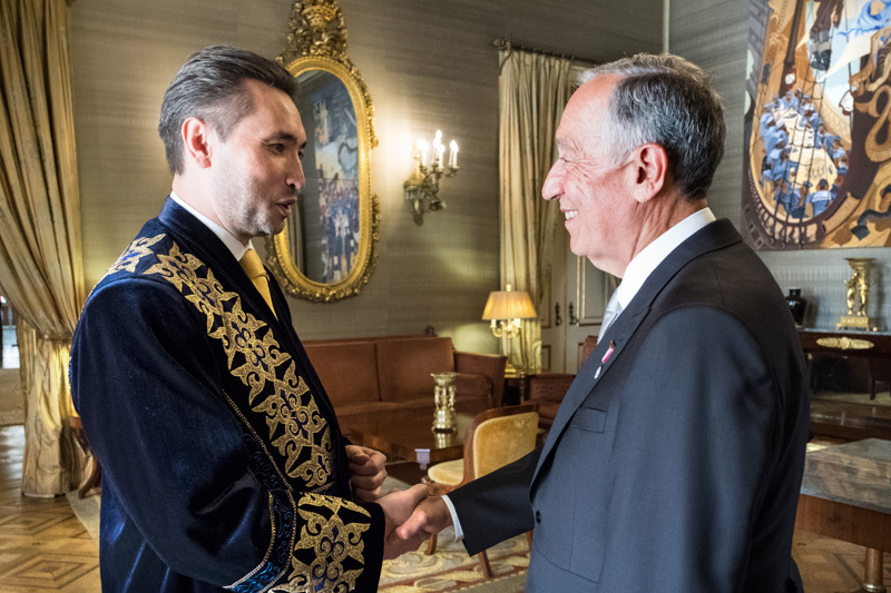 Елші Португалия басшысын еліміздегі жаңғырту бағдарламалары аясында болып жатқан ауқымды экономикалық және саяси реформалармен және Мемлекет басшысының «Төртінші өнеркәсіптік революция жағдайындағы дамудың жаңа мүмкіндіктері» жолдауының басты бағыттарымен таныстырды.