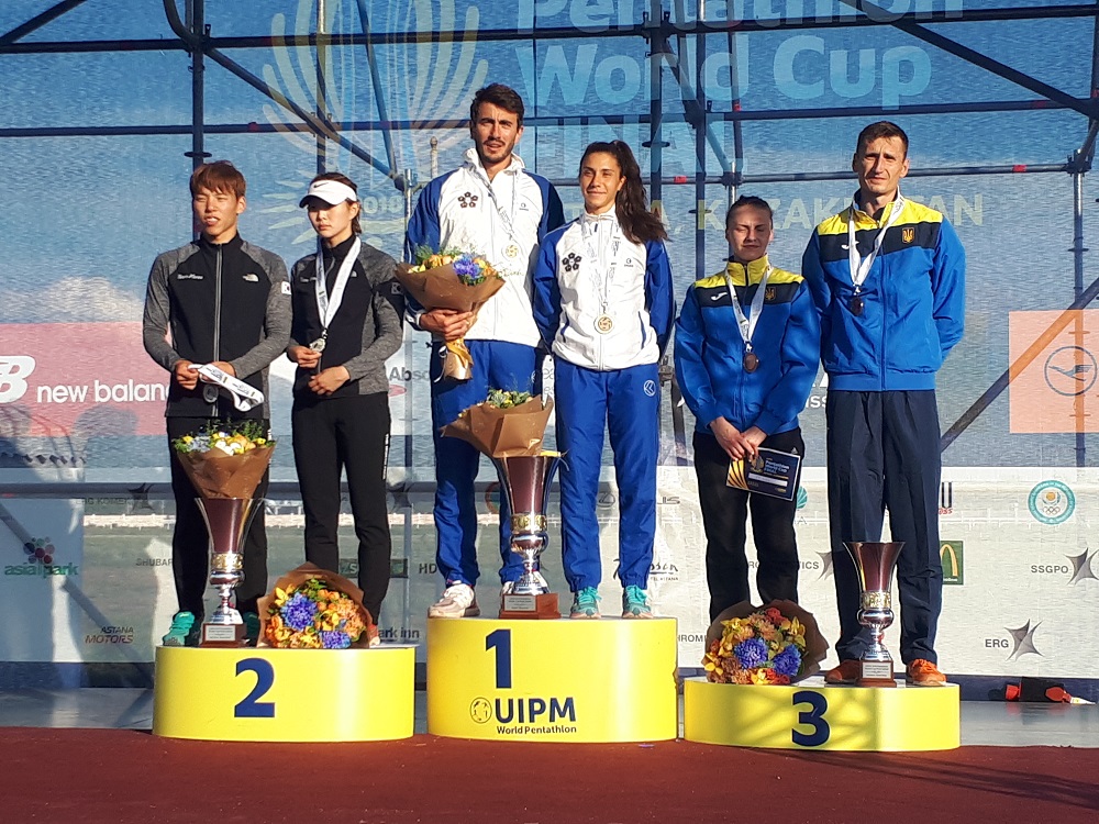 Финалдық жарыстар Қазанат атшабарында өтті. Алғашқы күннің қорытындысы бойынша әйелдер арасында бірінші орынды Олимпиада чемпионы австралиялық Хлои Эспозито алды, ол жалпы 1337 ұпай жинады, (семсерлесу – 226, жүзу – 287, салт жүріс – 300, лазерран (жүгіру+ату) – 524), екінші орынды венгриялық Сарольта Ковакс алды, оның қорыжынында – 1324 ұпай (семсерлесу – 244, жүзу – 289, салт жүріс – 293, лазерран – 498), үздік үштікті литвалық Джинтари Винкаускайте түйіндеді. Оның ұпайы – 1371 (семсерлесу – 185, жүзу – 266, салт жүріс – 300, лазерран – 566).