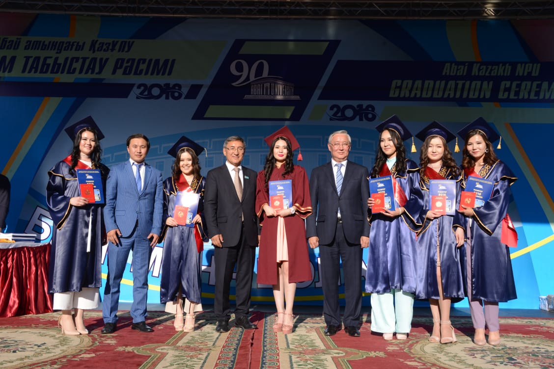 «Кезінде оқу орнының тұңғыш ректоры болған мемлекет және қоғам қайраткері Санжар Асфендияровтан, сол кезде Қазақстан халық ағарту комиссары болған Ораз Жандосовтан бастап Халел Досмұхамедов, Ахмет Байтұрсынов, Сәкен Сейфуллин, Ілияс Қабылов, Бәймен Алманов, Темірбек Жүргенов, Құдайберген Жұбанов, Сәрсен Аманжолов, Әлімхан Ермеков сынды ұлт зиялылары дәріс оқыған аудиторияларда білім алған сіздер өте бақытты ұрпақсыздар. Жылдан-жылға оқу орнымыздың әлеуеті артып келеді. Бүгінде ол ғылыми, ғылыми-педагогикалық кадрлар және педагогикалық білім беру, экономика және бизнес, құқықтану салалары бойынша мамандар даярлайтын көп салалы білім ордасы болып табылатыны өздеріңізге мәлім. Қазіргі таңда Абай атындағы ҚазҰПУ Шығыс Еуропа мен Орталық Азияның арнаулы ранжирлеуіндегі 30 елге қарасты 200 үздік университеттің бел ортасында тұрса, 2018 жылғы Ұлттық рейтингі бойынша педагогикалық жоғары оқу орындары арасында көшбасшы оқу орны, әлемнің үздік ТОП-500 университеттерінің қатарына және QS World University Rankings  рейтингісіне енді. Олай болса осындай мәртебелі оқу орнын бітірген сіздердің оны мақтан етуге толық құқыларыңыз бар» деп атап өткен университет ректоры түлектерге сәт-сапар тіледі.
