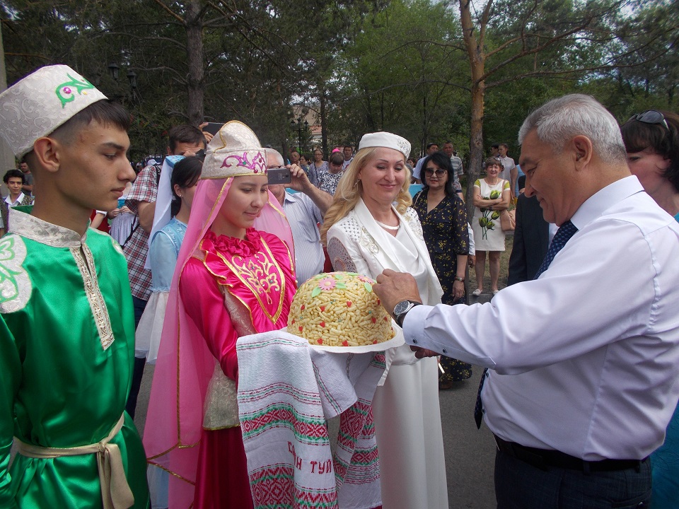Бесқарағай ауданынан арнайы келген Башкөлдік татар ағайындар ұлттық тағамдарынан дәм татырды. Барлығы жиналып, Татар халқының талантты ұлы Ғабдолла Тоқай ескерткішінің басына гүл шоқтарын қойды. Елді берекелі тірлікке бастайтын шараны дініне берік татар халқының дәстүрі бойынша имам тілек айтып бастады.