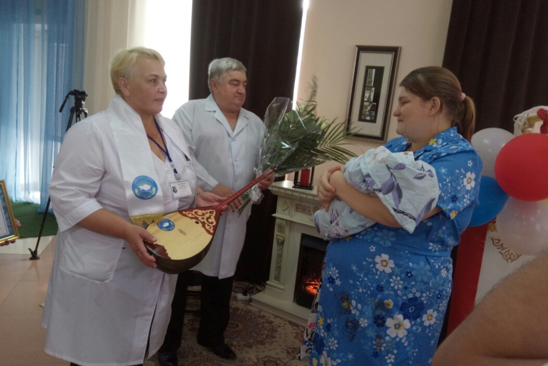 Перинаталдық орталықтың кіре беріс бөлмесі ұлттық сипатта безендіріліпті. Перинаталдық орталықтың бас дәрігері Татьяна Булгацевич, облыстың бас гинеколог-дәрігері Иван Янцен және Қазақстан халқы облыстық ассамблеясы хатшылығының меңгерушісі Бибігүл Аққожина жаңа туған қос нәрестеге домбыра және жас аналарға Құттықтау хат тапсырды.
