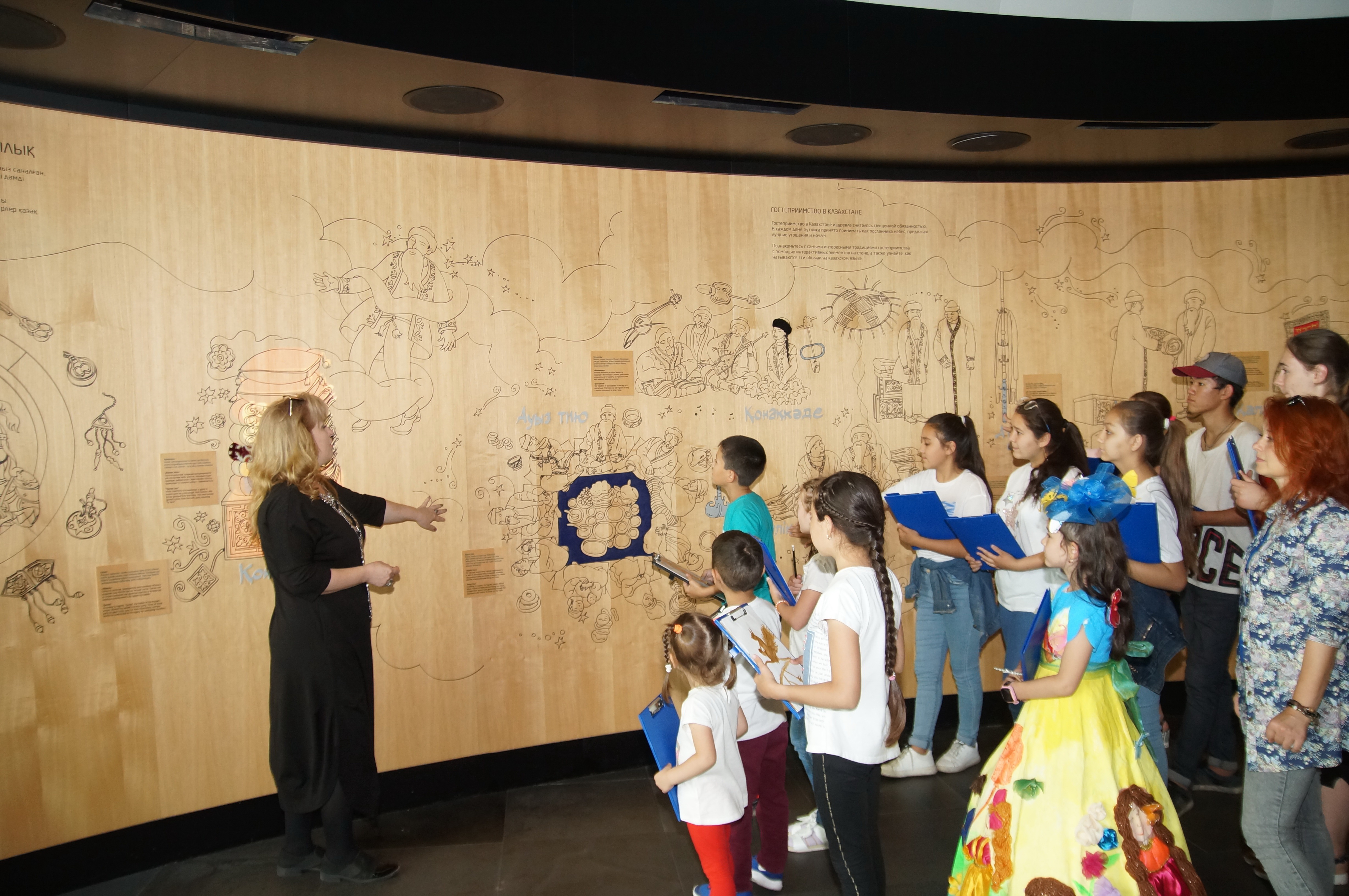 талляциялары бар зал үлкен әсер қалдырды. Оқушыларды қызықтырғаны интерактивті ашық сабақ болды. Балалар алған әсерлерін түрлі түсті қарындаш пен фломастерлердің көмегімен қағаз бетіне түсірді, – деп атап өтті Жамбыл облыстық мектеп олимпиадалары мен мектептен тыс іс-шараларды өткізу орталығының әлеуметтік-мәдени бағдарламалар бөлімінің меңгерушісі Ольга Сагандыкова.