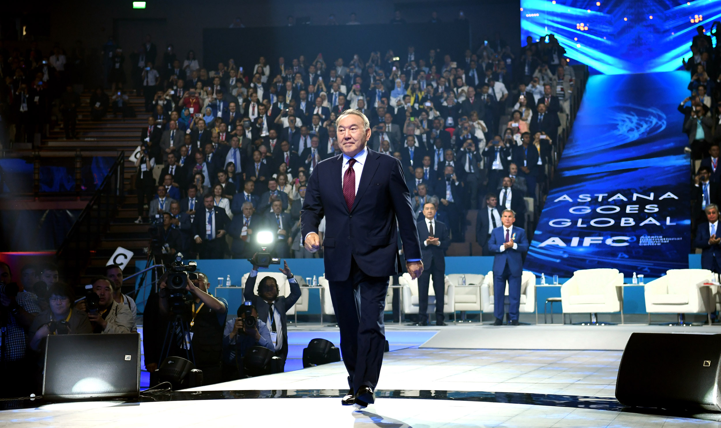 Мемлекет басшысы қазақ елінің кемел келешегін қалыптастыруда экономикалық тұрақтылыққа бағытталған шаралардың жүйелі түрде атқарылып отырғанын, өз кезегінде «Астана» қаржы орталығының ашылуы жаһандық деңгейдегі ірі бизнес орталықтардың ел экономикасының дамуына жоғарғы деңгейде баға беруіне, сенім білдіруіне негіз болғанын айтты.