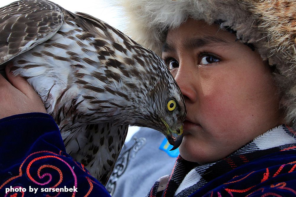 Көзіме бірден қаршығасын қолына қондырған қазақтың қара домалақ баласы түсті. Олардың қимылын объективте аңдумен болдым. Бала мен қаршығаның арасында бір байланыс, көзге көрінбейтін сүйіспеншілік бар екенін аңғардым. Тек осы баланы фотокөзбен аңдып отырдым. Оңтайы келгенде суретті түсіріп қалдым. Алайда бастапқыда бұл суретке риза болмадым. Жалғасты сәтті іздеп, тағы соңдарына түстім. Айналып келгенде көп кадрлардың ішінен осы суретке көз тоқтады. Кейін бірқатар газет-журналдарда, оқулықтың мұқабасына да шықты. Қытайда өткен халықаралық фотобайқауда да жүлделі болды. Осы фотоны «Үркер» сыйлығына да ұсынып көргенмін, бірақ жолы болмады.
