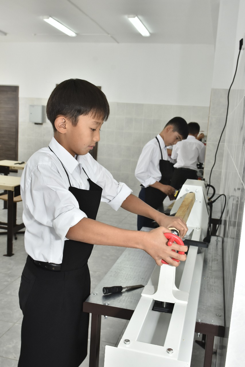 Мектепте кең спорттық және акт залынан бөлек, химия және биология, ағылшын тілі, кітапхана, медиатека кабинеттері бар. Бірінші қабатта 100 орындық асхана, кіре берісте кіретін турникет орналастырылған.