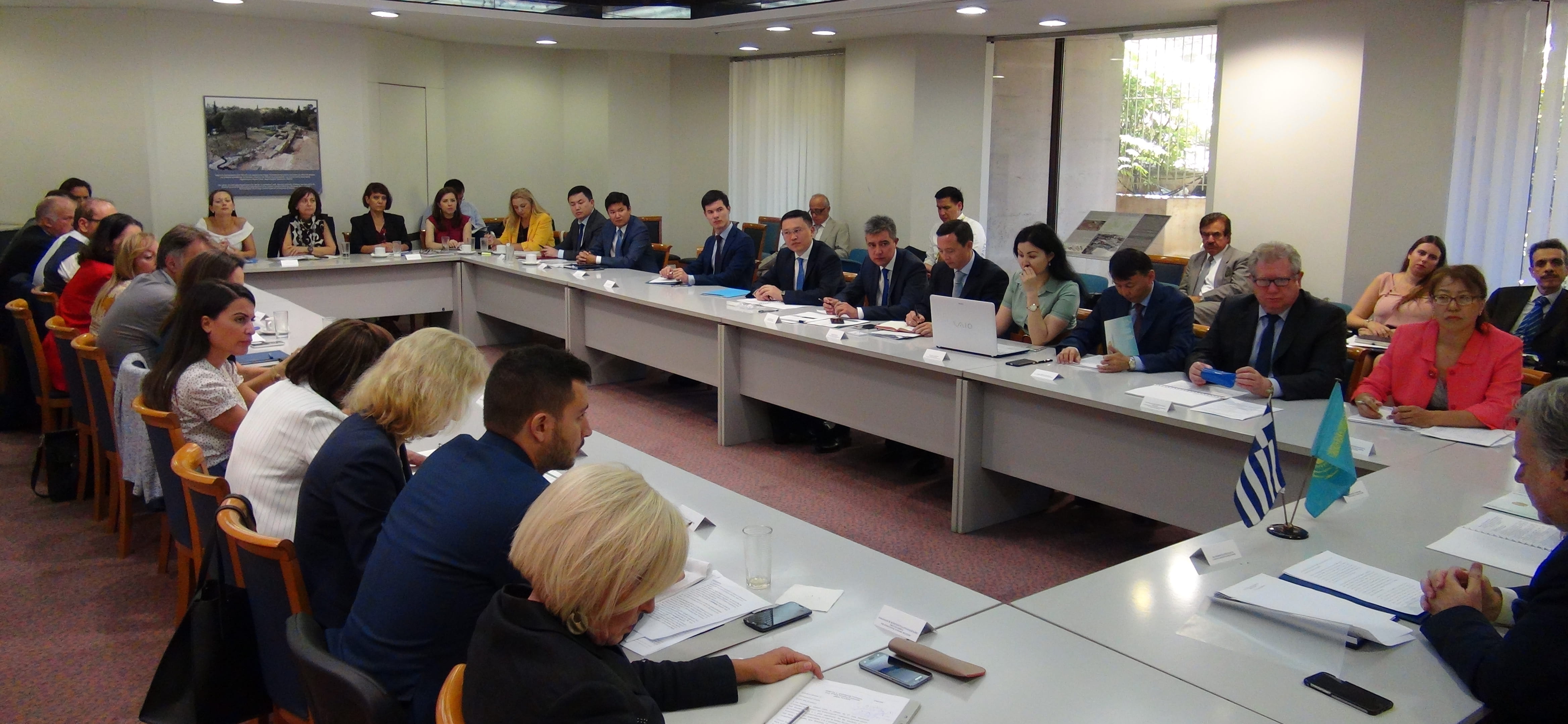 Комиссияның тең-төрағалары – Қазақстан Сыртқы істер министрінің орынбасары Роман Василенко мен Грекия Сыртқы істер министрінің Бірінші орынбасары Георгиос Катругалос - бірлесе атқаратын жұмыстың бағыттарын айқындап, сауда-экономикалық және инвестициялық ынтымақтастықты нығайту тақырыптарына жан-жақты тоқталды. Сондай-ақ Грекияның Қазақстанның мемлекеттік бағдарламаларына қатысу мүмкіндігі талқыланып, грекиялық қаржы институттардың «Астана» Халықаралық қаржы орталығымен тығыз ынтымақтастығы жөніндегі перспективалары қарастырылды.