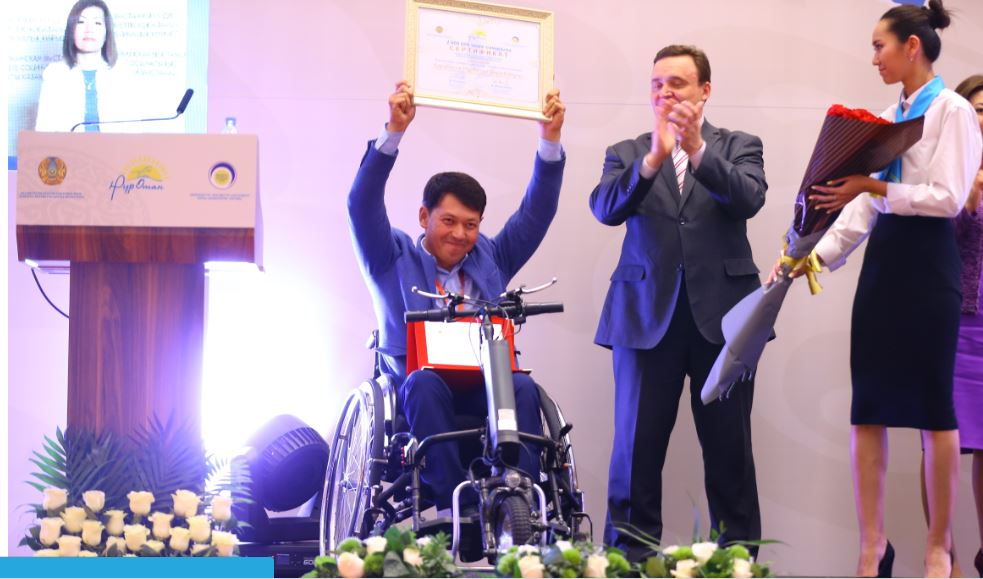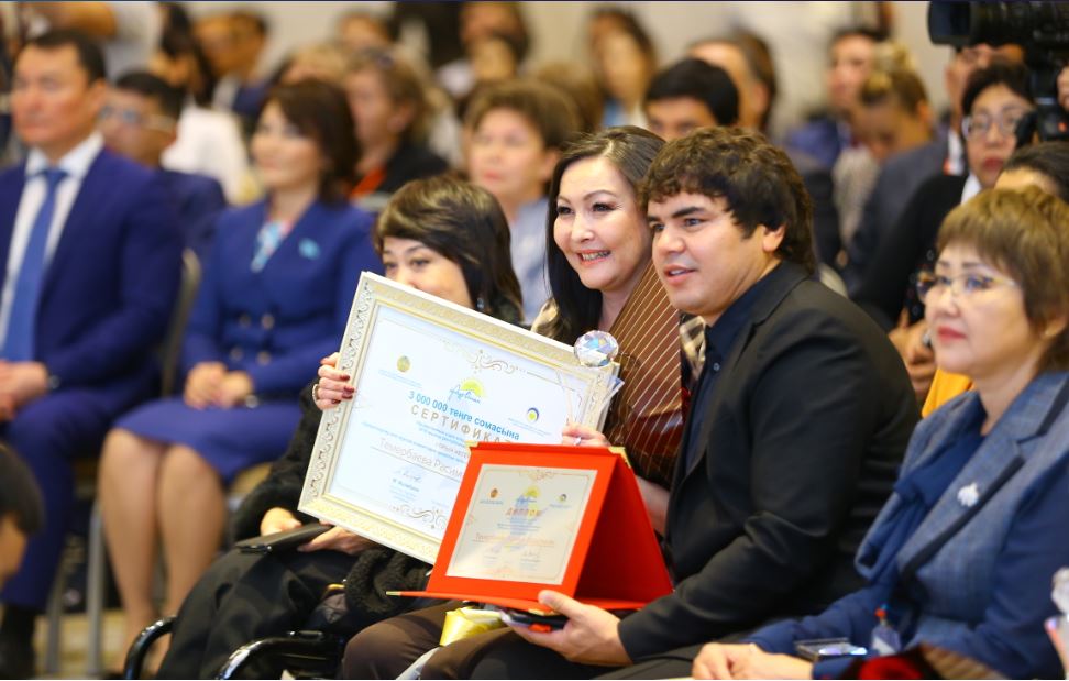 2-орынды «Арбадағы кедергісіз өмір» жобасымен қатысқан Нұрболат Қарабасов пен «Ел назы» арт-терапиямен дамыту орталығы жобасымен қатысқан белгілі әнші Кенжебек Жанәбілов иеленді. «Ел назы» орталығы деп ашқан себебім – маған Алла үлкен сынақ берді. Үлкен ұлымның есту қабілеті төмен болып, қаншама жерді шарлап ем іздедім. Баламның болашағына қатты алаңдадым. Бәрібір менде үлкен үміт болды. Операция сәтті өтті. Қазір балам сөйлей де, жаза да, оқи да алады. Енді осындай балаларға арналған орталық ашып, өзімнің басымнан өткендей қиындықтары бар ата-аналарға көмектескім келді. Бұл жобама қолдау білдіріп, жұмыстың одан ары жүруіне серпін беріп отырған ұйымдастырушыларға үлкен рахметімді айтамын», деді әнші К.Жанәбілов.