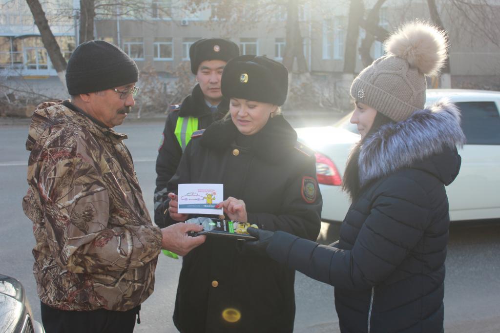 Полицейлер көлігін ақырын жүргізіп, абайлап өтетін жүргізушілерді Қостанай қаласындағы ең қауіпті деген Алтынсарин және Толстой көшелерінің бұрылысында тұрып марапаттады. Оларға жол қозғалысы ережелері жазылған буклеттер тапсырды.