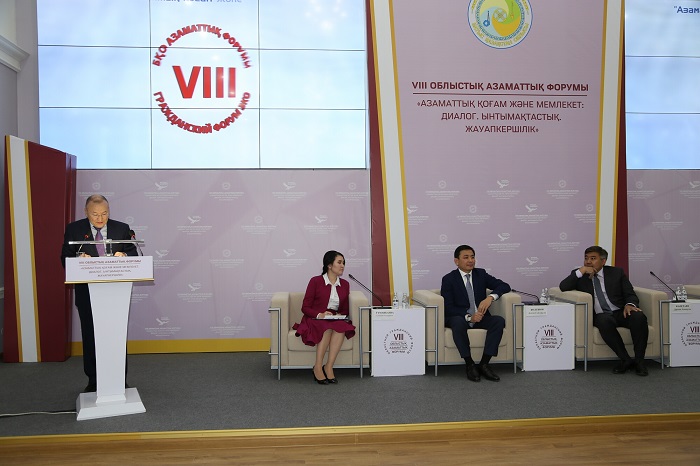– Елбасы үкіметтік емес ұйымдардың мүмкіндіктерін терең түсініп, жоғары бағалап отыр. Және оларға ерекше көңіл аударып, үнемі қолдау көрсетеді. Мемлекет басшысының «Қазақстан жолы – 2050: Бір мақсат, бір мүдде, бір болашақ» атты Жолдауында мемлекет, үкіметтік емес сектор және бизнес арасындағы өзара іс-қимылдың жаңартылған тәсілдері керек деп атап өтті. VIІ Азаматтық форумдағы ұсыныстарды іске асыруда қажетті шешімдер қабылданып, облыстағы мемлекеттік құрылымдар және азаматтық қоғам институттары арасында іскерлік әріптестік қатынасты нығайту бағытындағы жұмыстар жүргізілуде. Батыс Қазақстан облысында жергілікті атқарушы билік пен қоғамдық ұйымдар арасында өзара тығыз қарым-қатынас орнатылып, азаматтық бастамаларды жүзеге асыруға атсалысып жүрген қоғамдық ұйымдардың қатары жыл сайын артып келеді. Мемлекет тарапынан да азаматтық қоғамды дамытуға бағытталған кешенді жұмыс тұрақты жүргізілуде. Мысалы облыста мемлекеттік-әлеуметтік тапсырыс көлемі соңғы алты жылда 6 есеге өсті. Егер 2012 жылы 138 млн. теңге бөлініп, 120 жоба жүзеге асырылса, биыл 834 млн. теңге қаржыға 200-дей жоба орындалып жатыр. Өңірде үкіметтік емес ұйымдар саны да артып келеді. 2008 жылы мұндай ұйым саны – 150 болса, қазір олар 655-ке жетті, – деді өңір басшысы Алтай Көлгінов өз сөзінде.