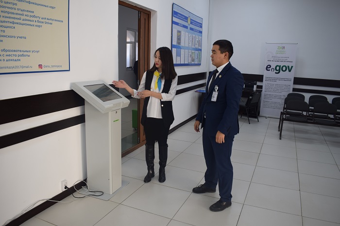 «Осы тұста Қ.Жұбанов атындағы Ақтөбе өңірлік мемлекеттік университеттің оң тәжірибесін атап өтуге болады. 2017 жылдың 26 қыркүйегінен бастап университетте «Темірқазық» студенттерге қызмет көрсету орталығы жұмыс жасауда.Бүгінгі күні ол «бір терезе» қағидаты бойынша жұмыс істейді және студенттерге қызмет көрсету тәртібі арнайы терминал арқылы электронды кезек беру талоны арқылы жүзеге асырылады. Сондай-ақ, университет қызметкерлері мен студенттер электронды түрде «eARSU» немесе «earsubot telegrams bot» мобильді қосымшасы арқылы қызмет алуға өтініш бере алады. «Темірқазық» студенттерге қызмет көрсету орталығының ашылуынан бастап 29 303 қызмет көрсетілген. Біз бұл оң тәжірибені басқа оқу орындарында қолдануға болады деп есептейміз», - деді И.Пак.