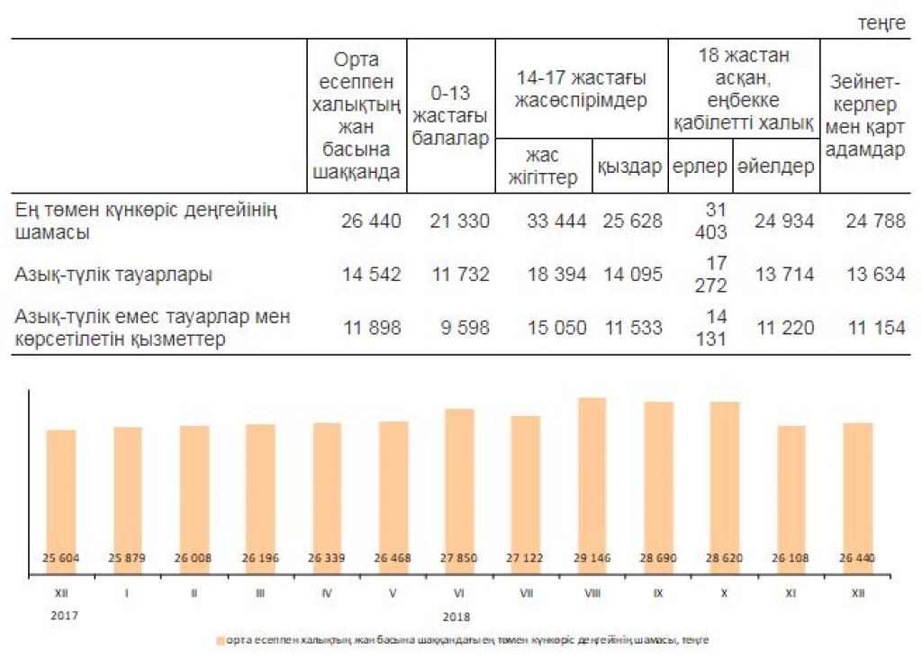 Ең төмен күнкөріс деңгейі – шамасы бойынша ең төмен тұтыну себетiнiң құнына тең, бір адамға арналған ең төмен ақшалай кiрiс. Ең төмен тұтыну себетi адамның тыныс-тіршілігін қамтамасыз ету үшін қажетті тамақ өнімдерінің, тауарлар мен көрсетілетін истика заттай және құн түріндегі ең төмен жинағын білдіреді. Ол азық-түлік себетінен және азық-түлік емес тауарлар мен көрсетілетін қызметтерге жұмсалатын шығыстардың тіркелген үлесінен тұрады. Ең төмен күнкөріс деңгейін есептеуге арналған аз тұтынылатын азық-түлік емес тауарлар мен көрсетілетін қызметтерге жұмсалатын шығыстардың үлесі 2018 жылғы 1 қаңтардан бастап ең төменгі тұтыну себеті құнының 45 пайыздық мөлшерінде белгіленген.