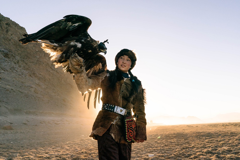Баян-Өлгей, Моңғолия - Жұма күні сабақ біткен соң, Заманбол үйіне оралып, үй жұмысын орындап және жасөспірімдерге тән үй жағдайындағы өз міндеттерін атқарады. Ал сенбіде ол атын ерттеп, өзінің үйретілген жыртқыш құсымен қар тауларына бағыт алып, сенімді әріптесімен жабайы аңдарды аулауға бет алады.