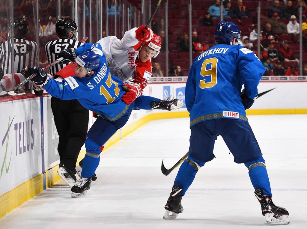 Бұл кездесу біздің жастар үшін сәтті басталды. Олар ойын басынан шабуыл тізгінін қолға алуға тырысты. Алғашқы шайба небәрі 35-секундта соғылды. Оны Саян Данияр орындады. Ал 4-минутта Қазақстан екі шайба айырмасымен алға шықты. Ол Давыд Макуцкийдің еншісіне жазылды. Екінші кезеңде қос құраманың да есепті өзгертуге мүмкіндігі болған еді. Әсіресе, Дания жастарының белсенділігі айқын аңғарылып тұрды. Дегенмен оларға біздің хоккейшілер лайықты деңгейде тойтарыс бере білді. Кейбір сәтте қақпашымыз Демид Еремеев шеберлігін көрсетті.