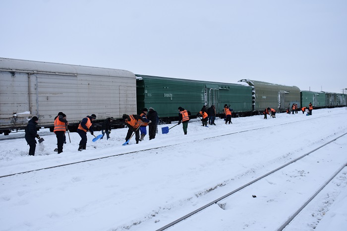 Қазіргі таңда пойыздар қозғалысы сенімділігі мен қауіпсіздігін қамтамасыз ету үшін теміржол инфрақұрылымдарын қардың көміп қалуынан тазарту бойынша жұмыстар үздіксіз жалғасуда.