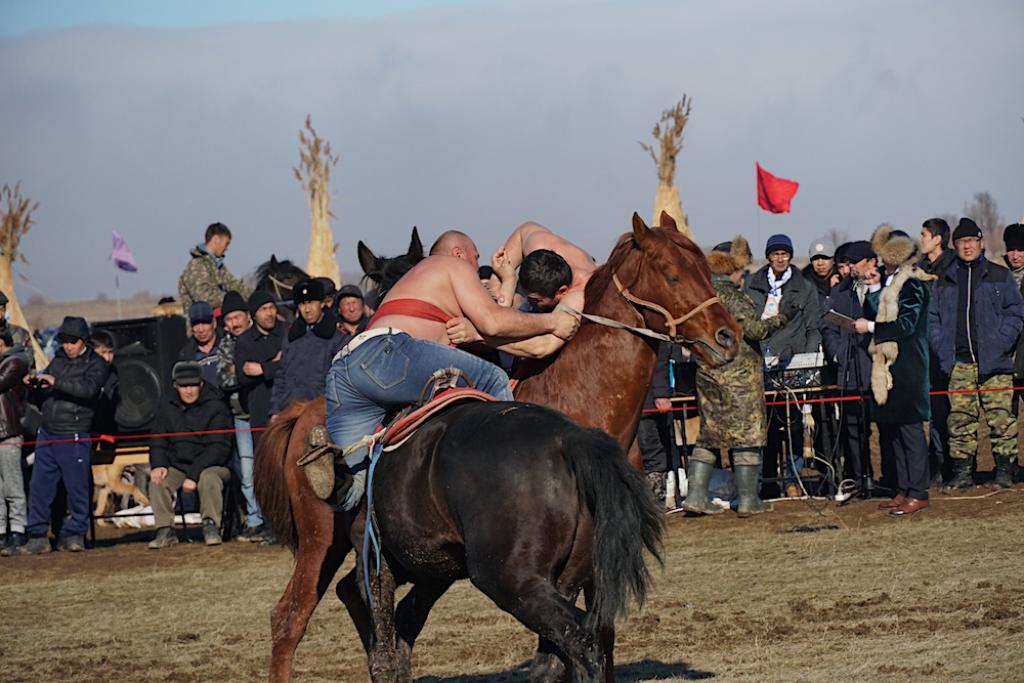 Мерекеге келген қонақтардың делебесі қозып, тура өздері қасқыр алғандай қуанып жатса, топ ішінен қанжығасы қанданған ағайынға құтты болсын айтысқан жұрттың үні естіледі.