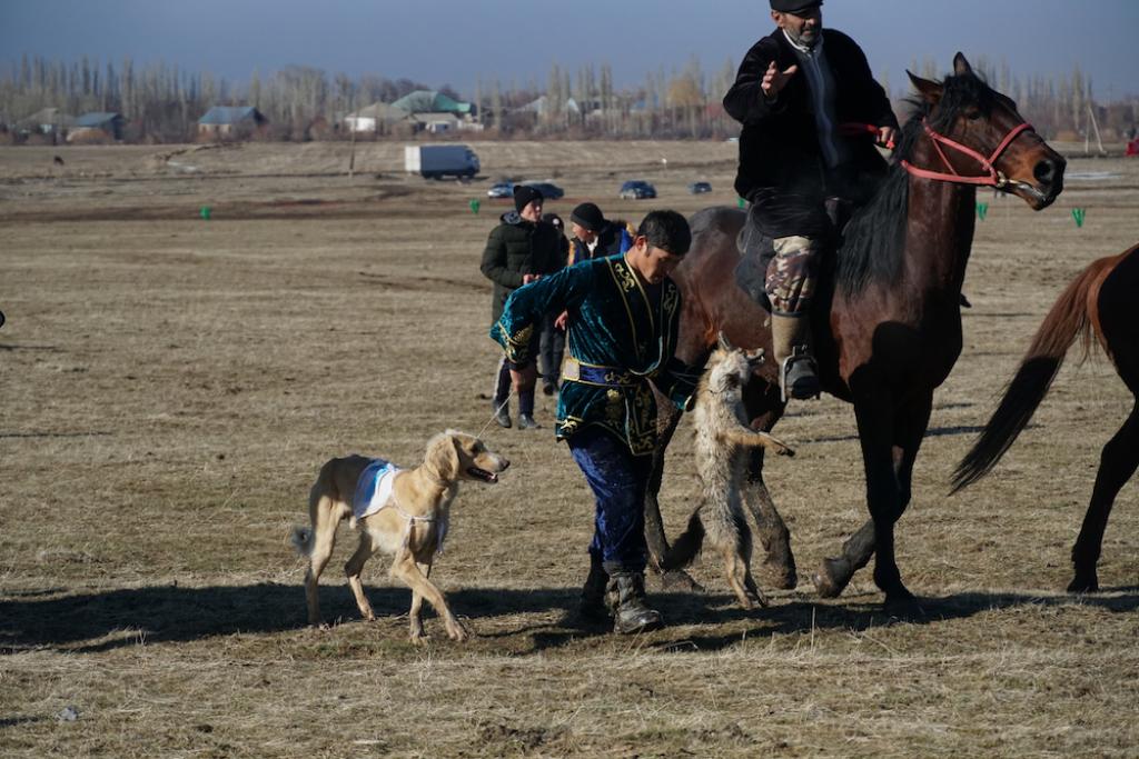 Дәл осы сәтте тау етегіндегі қыраттан қиқулаған үн естілді. Аудан әкімі Тұрашбеков бастаған игі-жақсылар жайғасқан алаңқайда бүркіт пен тазы салу сайыстары басталып кетті. Жеті қазынаның тілін қимыл қозғалысынан білетін кәнігі құсбегілер мен тазы баптаушылар қырдың күрең түлкісіне бес қаруларын сайлап-ақ келіпті. Ә, дегеннен түлкі, қоянды қамырша илеп, бауырына басып жатты.