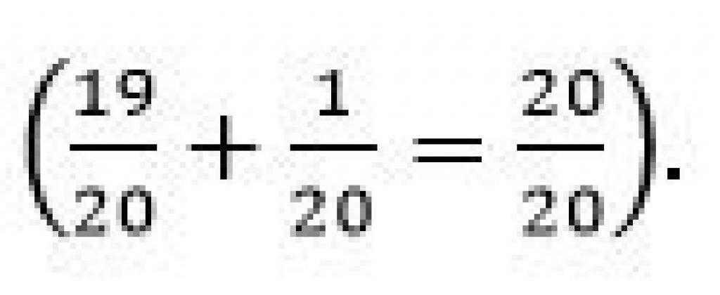 Осы үш бөлікке қосымша ретінде жиырманың бір бөлігін, яғни 1/20 бөлікті қоссақ, онда барлық 20 тұлпар толығымен қамтылады.
