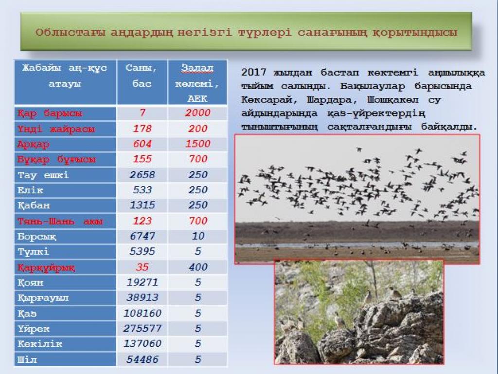 «Облыстағы бекітілген балық шаруашылығы су айдындарының саны - 11. Балық шаруашылығын жүргізуші тұлғаларға өткен жылы 1336 тонна лимит бөлінген. 2018 жылы тексерулер мен табиғат қорғау іс-шаралары нәтижесінде барлығы 329 құқықбұзушылық анықталды. Оның 223-і балық шаруашылығы саласы, 68-і аңшылық шаруашылығы, 38-і орман шаруашылығы бойынша болып отыр», - деді Бақытжан Есіркепұлы Өңірлік коммуникациялар қызметінде өткен баспасөз мәслихатында.