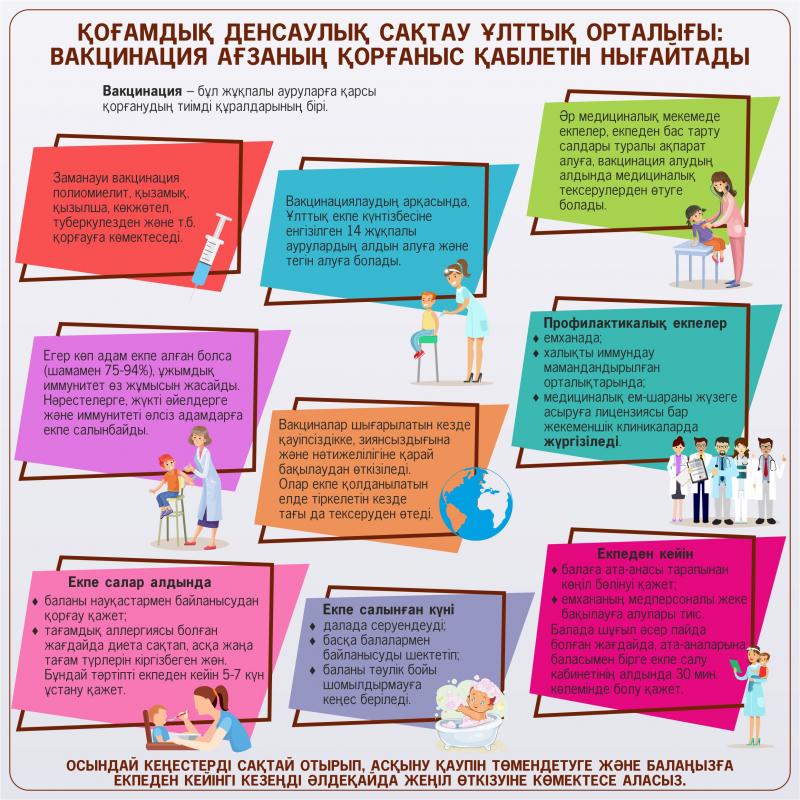 Бұдан бөлек, әр медициналық мекемеде екпелер туралы, екпеден бас тарту салдары туралы толық ақпарат алуға, сондай-ақ, вакцинация алудың алдында толық медициналық тексерулерден өтуге болады.