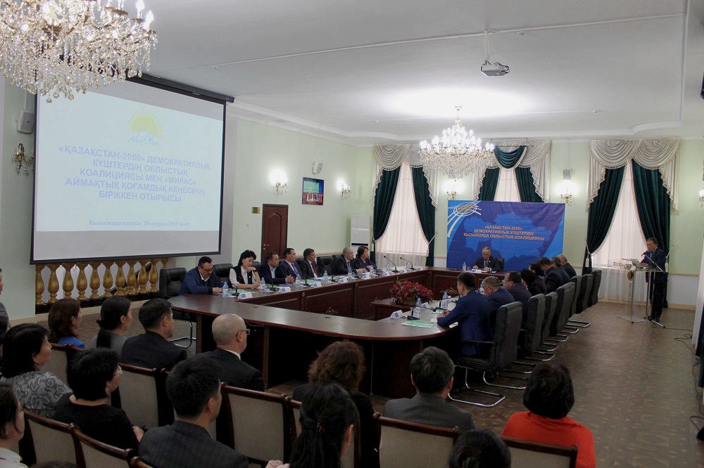 Мәжілісте коалиция мүшелігіндегі партиялардың басшылары, «Мирас» аймақтың кеңесінің мүшелері де сөз алып, елордамызға Елбасы есімін беру туралы өз ойларын ортаға салып, пікірлерімен бөлісті. Атап айтқанда, «Ауыл» Халықтық – демократиялық – патриоттық партиясының облыстық филиалы төрағасы Серікбай Өмірзақов, «Ақжол» Қазақстан демократиялық партиясы облыстық филиалының төрағасының орынбасары Шәрбану Есекеева, «Қазақстан коммунистік халық партиясы» облыстық филиалының хатшысы Талғат Телеубаев, «Мирас» қоғамдық кеңесінің мүшелері М.Мәметова атындағы Қызылорда гуманитарлық колледжінің директоры Бақытжан Сайлыбаев пен аймақтық «Рухани жаңғыру» орталығының директоры Нұрлыбек Мыңжас, ҮЕҰ–дар атынан облыстық ардагерлер кеңесінің төрағасы Серік Дүйсенбаев пен облыстық кәсіподақтар төрағасы Серік Сермағанбетовтер Қазақстанның табыстары мен жеңістері Назарбаевтың есімімен тығыз байланысты екендігін тілге тиек етіп, өтпелі кезеңде елді өрге сүйреген Нұрсұлтан Назарбаевтың есімін елордамызға беру орынды шешім және ел дамуының жаңа кезеңін анықтайтын аса маңызды қадам екенін айтты.