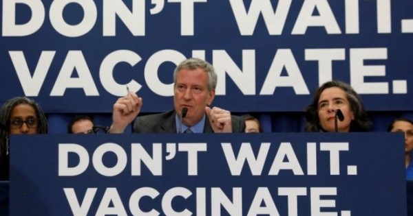 Осы оқиғаға байланысты баспасөз жиынын өткізген қала әкімі Билл де Блазио вакцинадан бас тарту заң бұзуға сәйкес келетінін мәлімдеді. Аллергология және жұқпалы аурулар ұлттық орталығының директоры Энтони Фаучи жергілікті дінбасыларды екпе насихаттауға шақырып отыр.