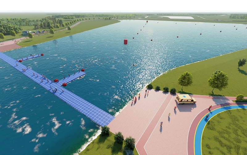 Триатлон-саябақта тартан мен асфальт бетоны төселген ұзындығы 5 шақырым жүгіру және велосипед жолдары салынады. Алыс және қысқа қашықтықтарға жүзу үшін қалқымалы көпір жабдықталады. 100 велосипедке арналған спорт алаңқайы мен транзиттік аумақ, автотұрақ, теннис корты, егде адамдарға және кішкентай балалары бар ата-аналарға арналған демалыс аймағы қарастырылған. Жаңа спорт нысанында халықаралық жарыстарды да өткізуге болады.